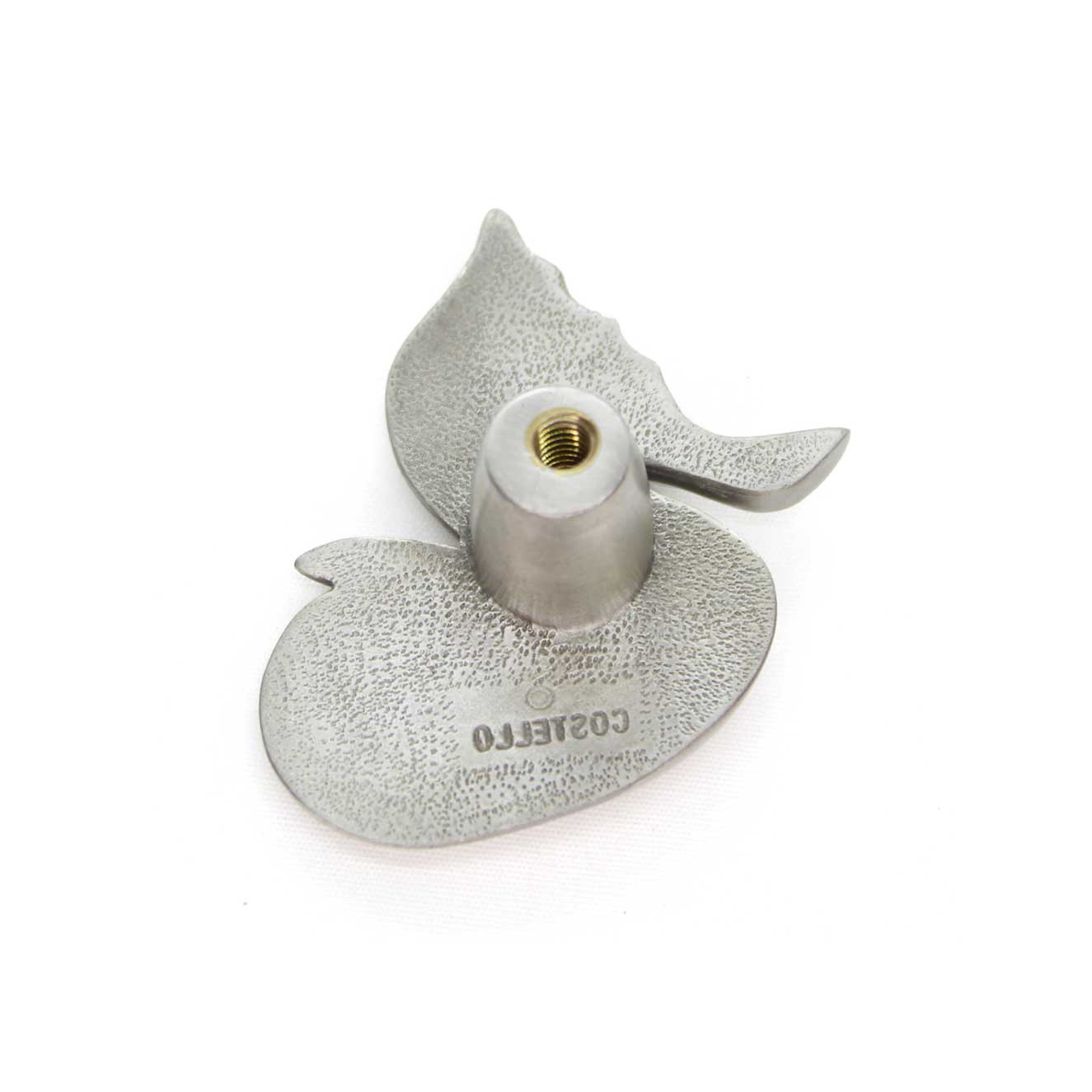 Dimensions: 1.5" wide x 1.8". Available in brushed nickel, chrome, dark bronze, and white. Cast in pewter. Copyrighted artwork by Peter Costello.  Priced individually.  Mounts on single brass reinforced post.  1” mounting screw included. Free shipping to USA addresses. Most orders ship within 24 hours.