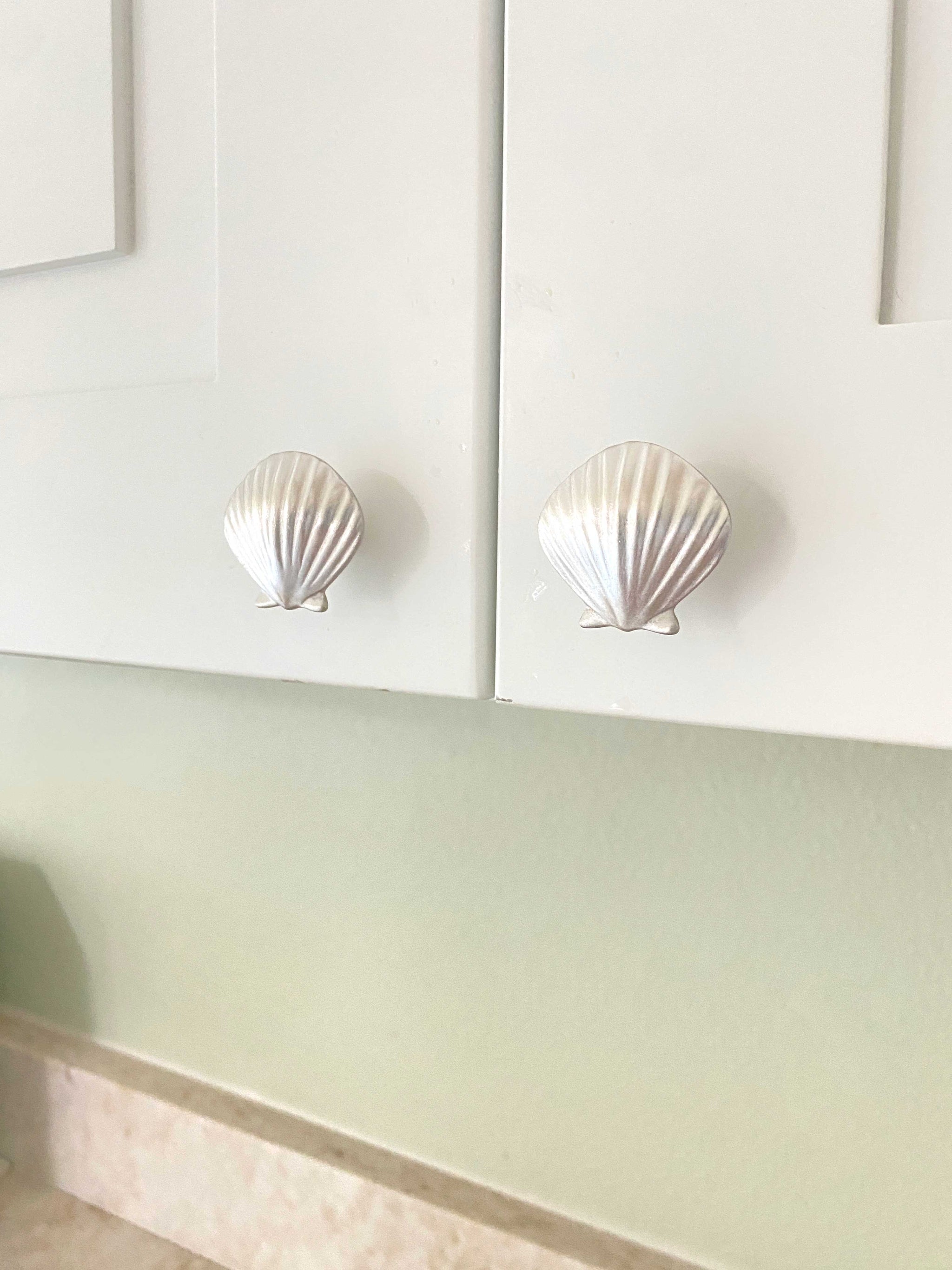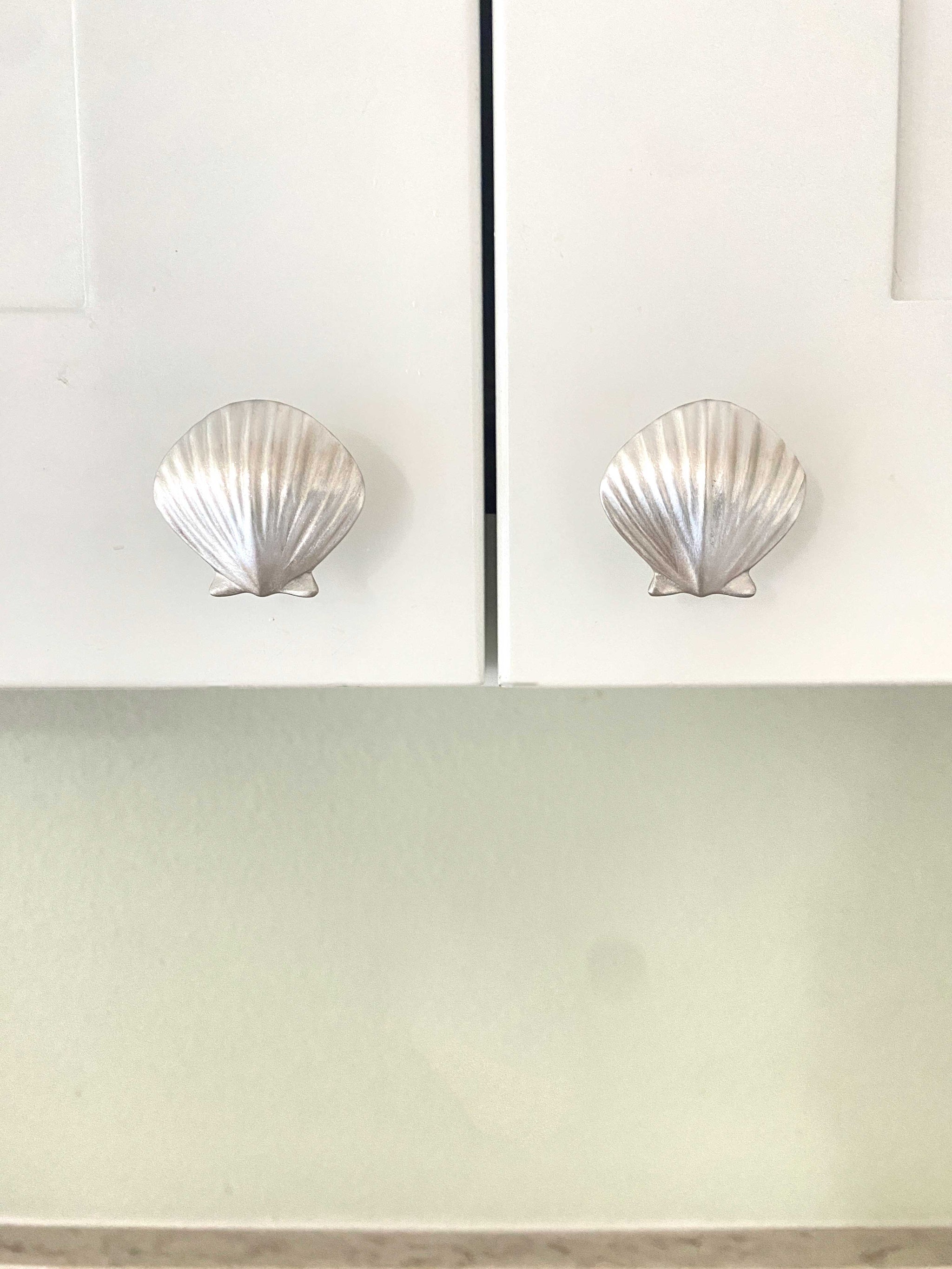 These brushed silver drawer/door knobs are a perfect size for a vanity. They are beautiful and quite hefty for their size. I got some right facing, some left; they fit right in with any ocean themed design!